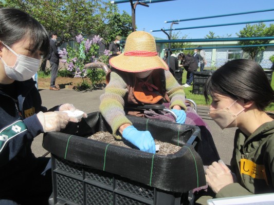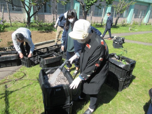 それぞれのグループの種や苗を準備しながら🍅🌱🥔