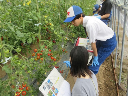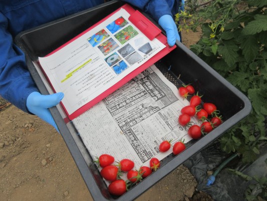 手順書を見ながら実際にミニトマトの収穫をしてみます🍅